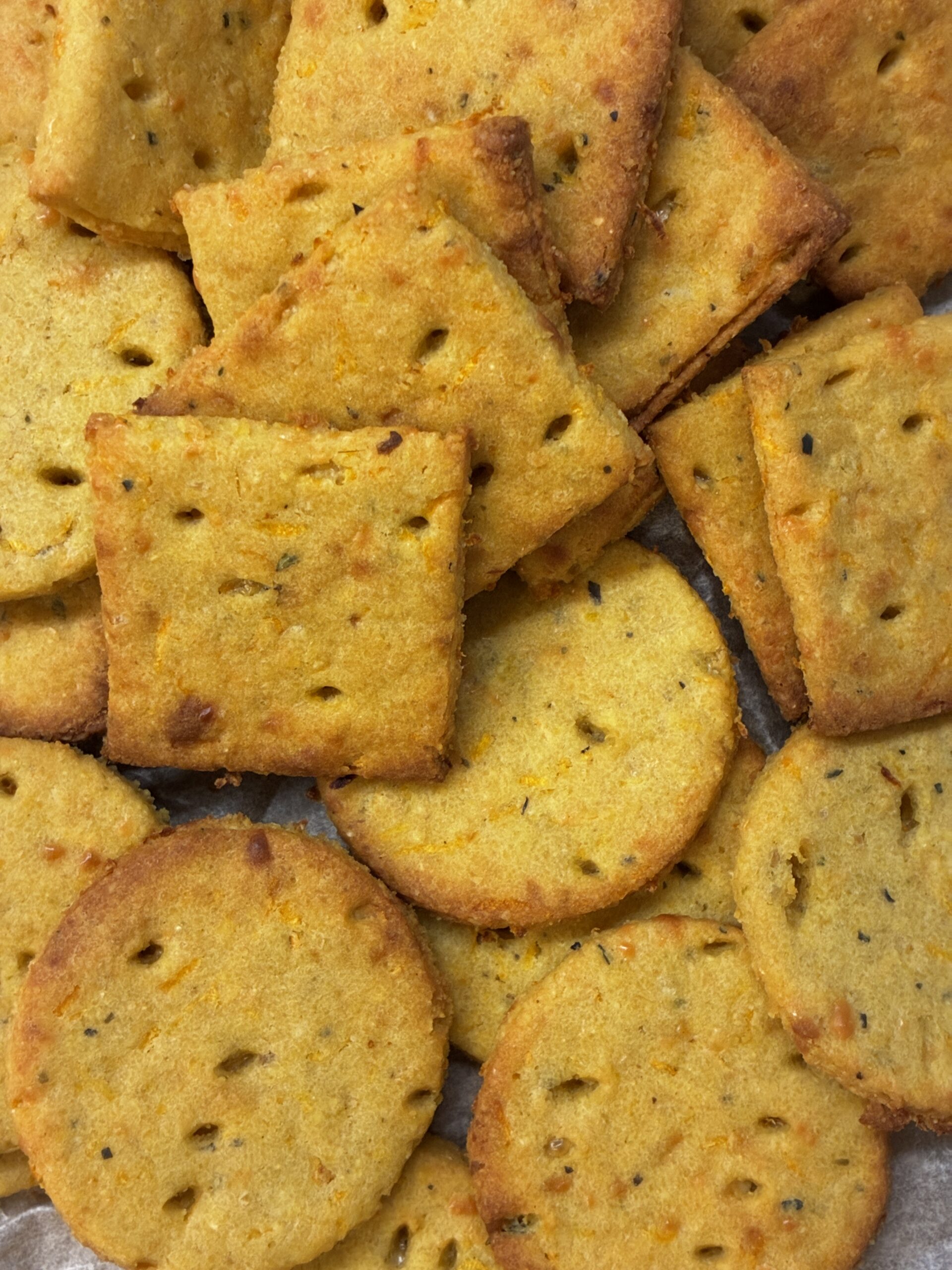 Pontsiku kreekerid cheddari, porgandi ja kikerhernestega on lihtsad, ent erakordsed. Need on käsitsi valmistatud krõbedad küpsetised, mis sobivad suurepäraselt juustuvaagnale, suupistelauale või lihtsalt kiireks ampsuks.